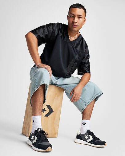 Parte superior de ante con malla inspirada en las zapatillas de running de los años 80 para crear un look retro