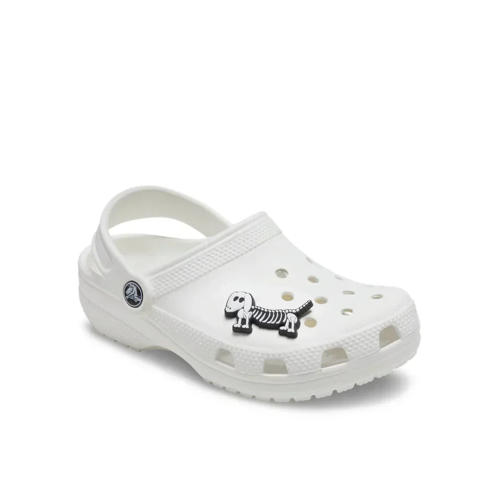 Los charms son pequeñas y divertidas imágenes, letras, frases, personajes y elementos de la cultura pop montados en una base para encajar en los orificios de tus Crocs. Con el espeluznante Perro Esqueleto de Halloween, puedes celebrar la temporada de terror mientras personalizas tu calzado favorito. Este charm temático captura el espíritu festivo de Halloween con un diseño único y cautivador que se destaca. Se encaja sin esfuerzo en tus zuecos, sandalias y chanclas, permitiéndote crear un look completamente personalizado. Perfecto para quienes aman las festividades de otoño y desean añadir un toque de diversión espeluznante a su estilo diario. Colecciona diferentes diseños de Halloween y mezcla tus favoritos para un look verdaderamente único. ¡Que la magia de Halloween brille en cada paso!